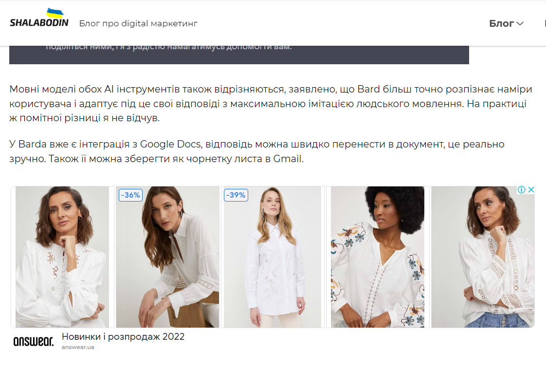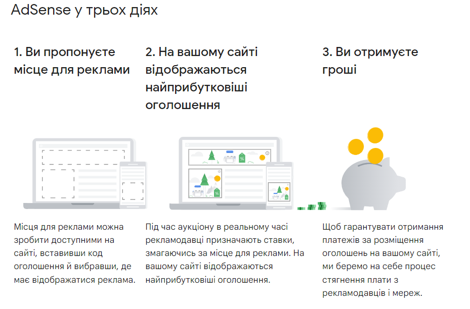 Першим варіантом для монетизації блогу, буде Google AdSense. Це інструмент гугла який допомагає розміщувати на вашому сайті рекламні оголошення і робиться це дуже просто. Нижче приклад як може виглядати реклама через Google AdSense.